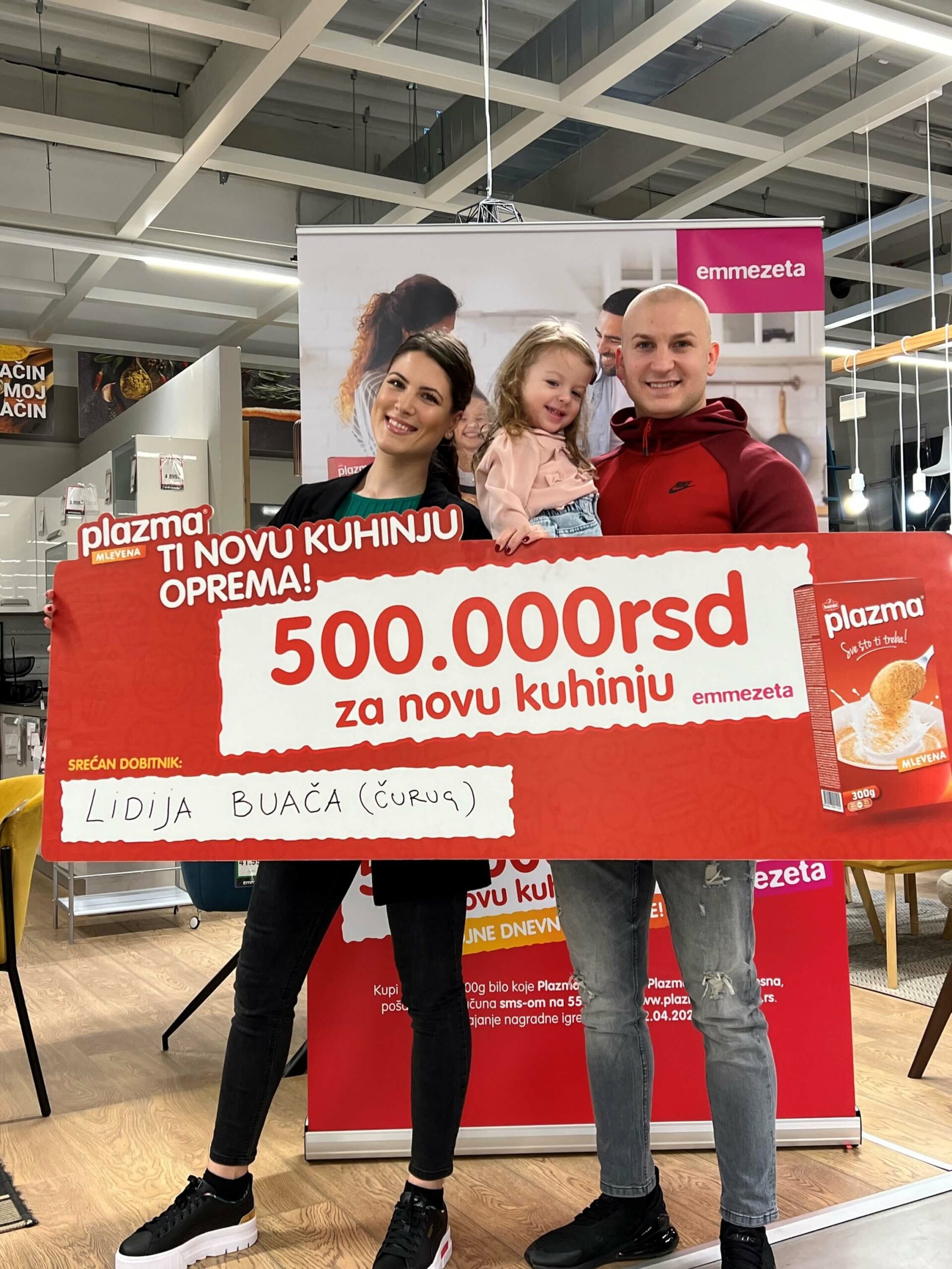 Srećnoj dobitnici, Lidiji Buača iz Čuruga, danas je dodeljen vrednosni vaučer od 500.000 dinara koji će moći da iskoristi u Emmezeta prodajnim objektima za opremanje kuhinje.