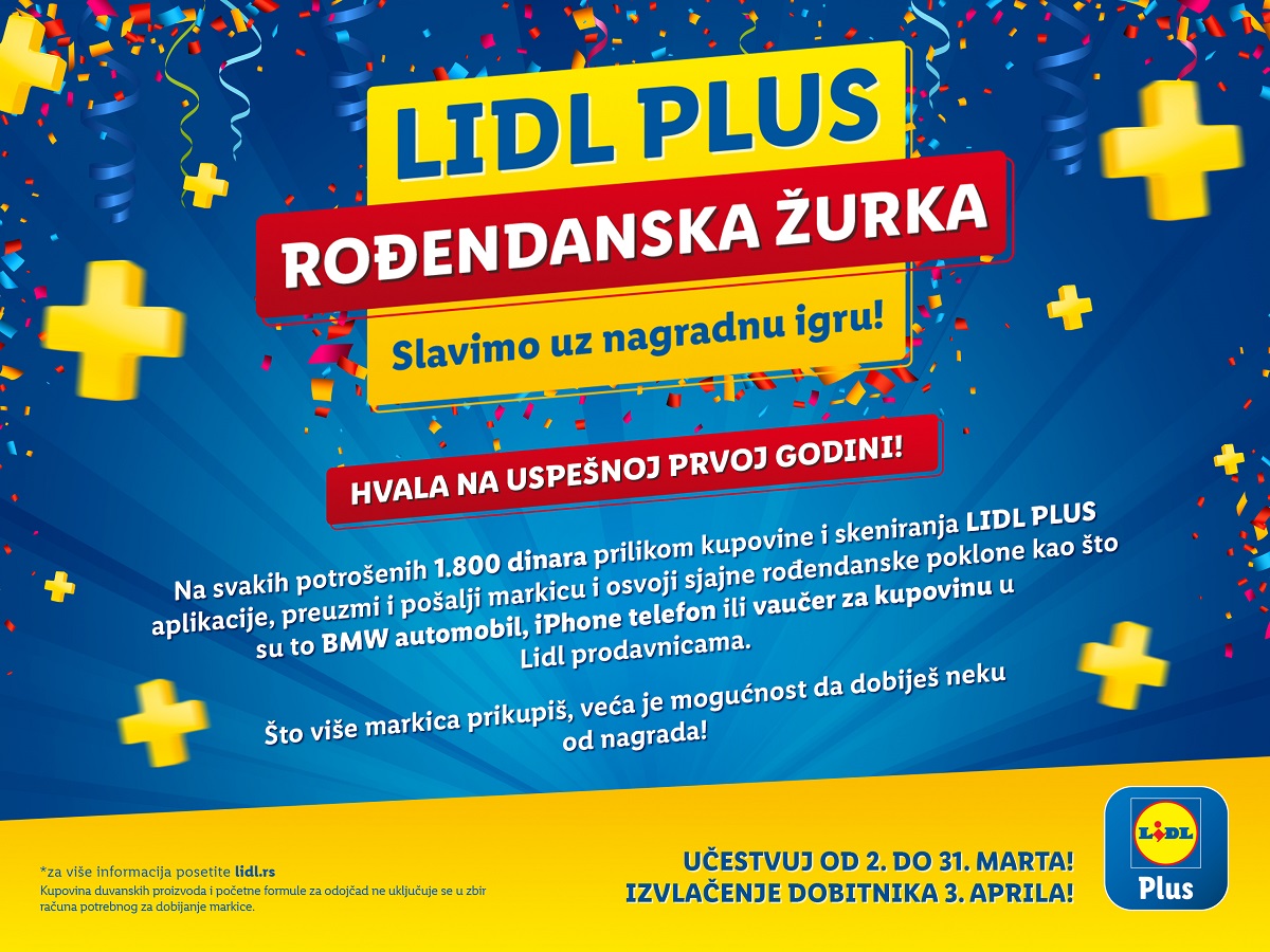 Prvi rođendan Lidl Plusa proslavljamo nagradnom igrom, i tu nećemo stati – korisnike uskoro očekuju nove povoljnosti kojim će moći da povećaju krug ušteda, kao i sve veće prilagođavanje ponude Lidl Plus kupona za popuste navikama pojedinačnih korisnika. Time će svaki korisnik Lidl Plusa imati čitav svet popusta za sebe, rekla je Martina Petrović, rukovodilac Korporativnih komunikacija Lidl Srbija.