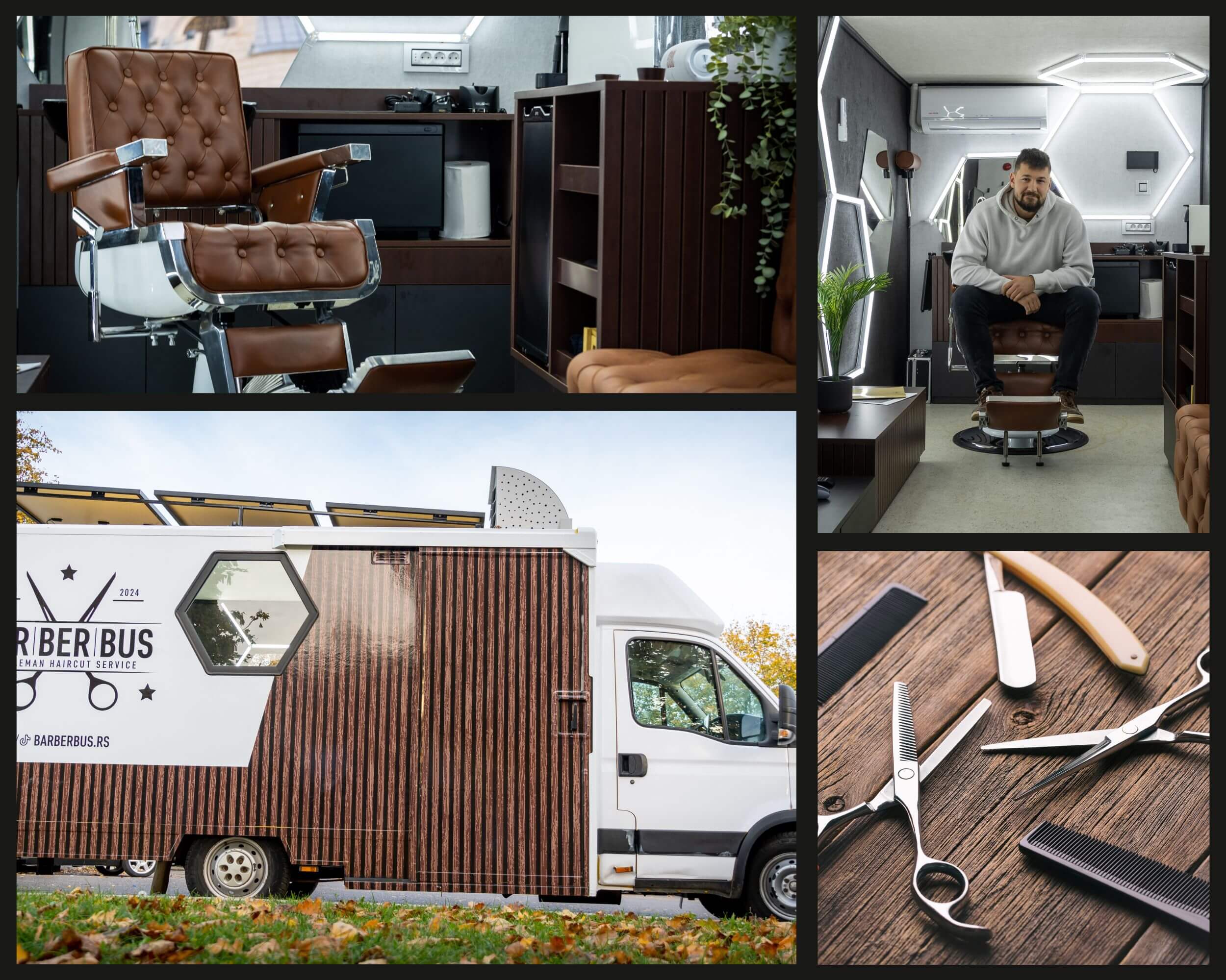 „Naš berber Vuk Petrović, koji ima više diploma i završenih beogradskih akademija, sertifikata i obuka, zadužen je za najmodernije stilove brade i kose. Želeli smo da u Barber Busu imate potpun ugođaj, tako da smo pored sporednih stvari, kafe aparata, televizora, playstation-a, frižidera, ubacili i prvoklasne usluge kao što su brijanje sa tretmanom vrućim peškirima, masaža glave, depilacija voskom za uši i nos… Tako da kada se završi kraljevski tretman, siguran sam da ćete se osećati superiornije“, objašnjava naš sagovornik glavne razlike između klasične berbernice i ove neobične, na točkovima.