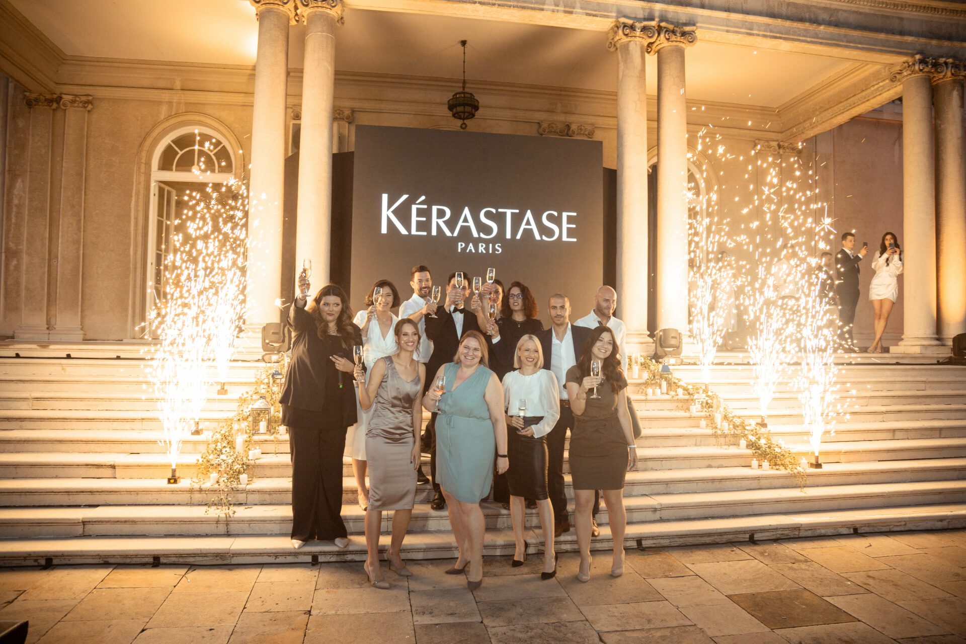 U dvorištu Belog dvora bili su parkirani Poršeovi dvotočkaši, barmen je pravio koktele inspirisane mirisom Genesis Hommen proizvoda, a među zvanicama našli su se ljudi iz sportskog, kulturnog i diplomatskog kora. Nastavak događaja usledio je na terasi Dvora, gde je organizovana luksuzna večera i revija koju su realizovali korisnici Kérastase proizvoda.