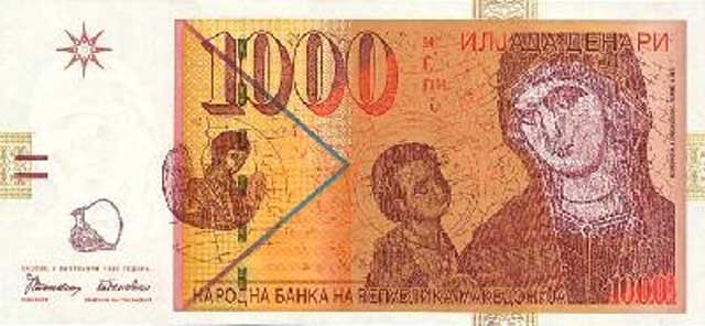 Makedonski denar je u upotrebu uveden 26. aprila 1992. godine. Papirne novčanice su u rasponu od 10 do 2.000 denara (0,16 do 32,42 evra).