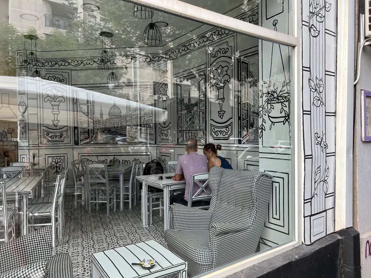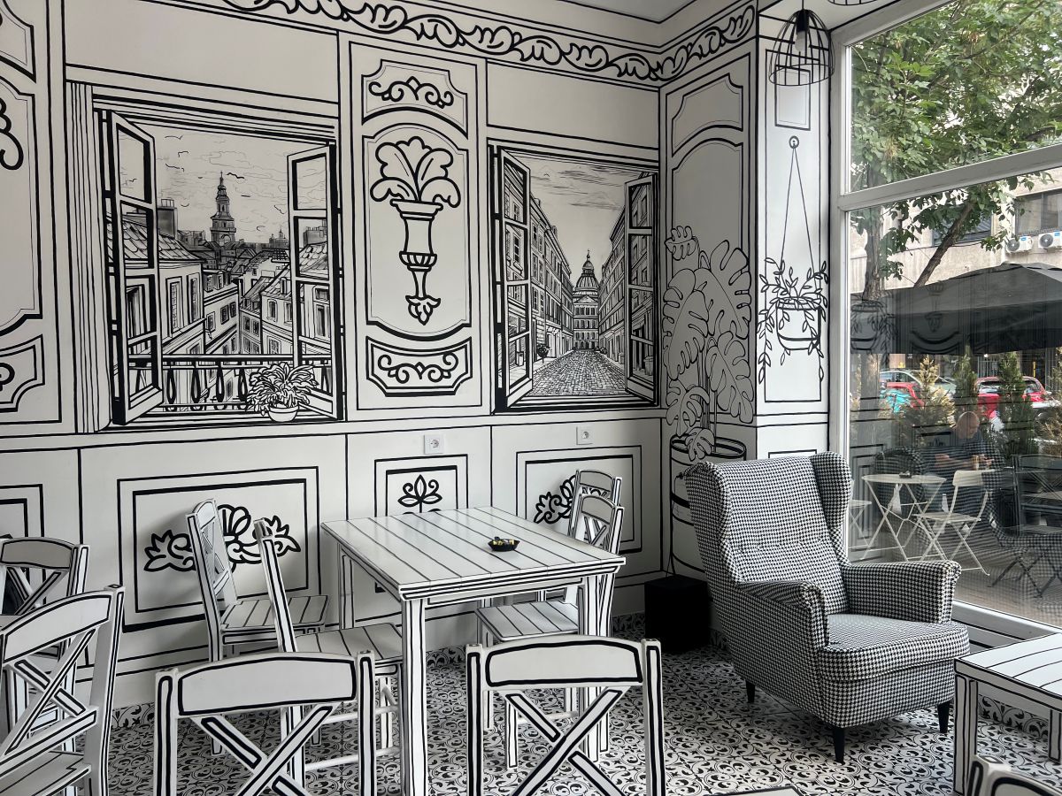 Lokal je dizajniran tako da podseća na crno-beli crtež, a svaki detalj, od zidova do lustera, oslikan je ručno. „Sve smo sami osmislili – i slike koje se nalaze na zidovima birali smo iz Danske. Ceo enterijer i eksterijer oslikali su umetnici iz ateljea Andreja Kolosova. Prevazišli su sva naša očekivanja,“ kaže Marina sa ponosom.