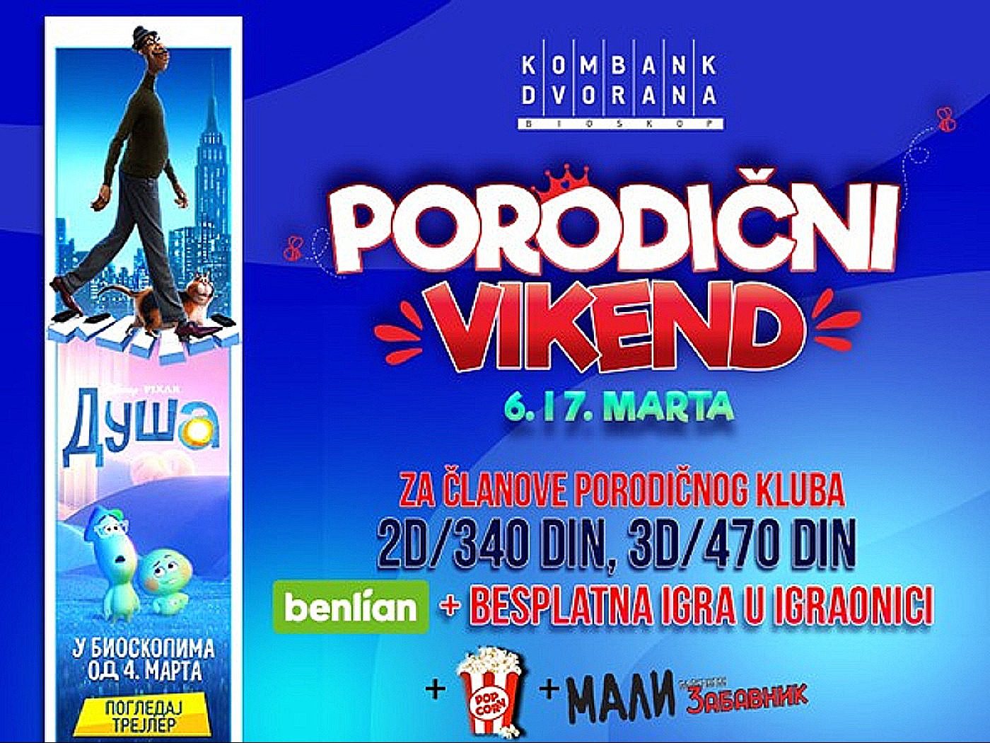 Tradicionalni Porodični vikend se nastavlja i tokom meseca marta u Kombank Dvorani, u subotu i nedelju 06. i 07. marta, ali ovoga puta uz mnogo više iznenađenja za najmlađe.