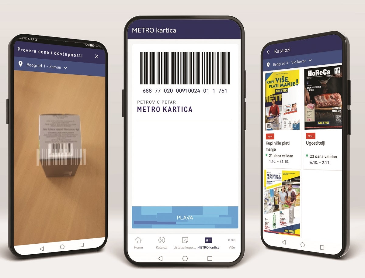 Dodatna pogodnost METRO mobilne aplikacije ogleda se i u tome što omogućava efikasno upravljanje svim METRO karticama kojima kupac raspolaže, bez potrebe da se pri kupovini poseduje sama fizička kartica.
