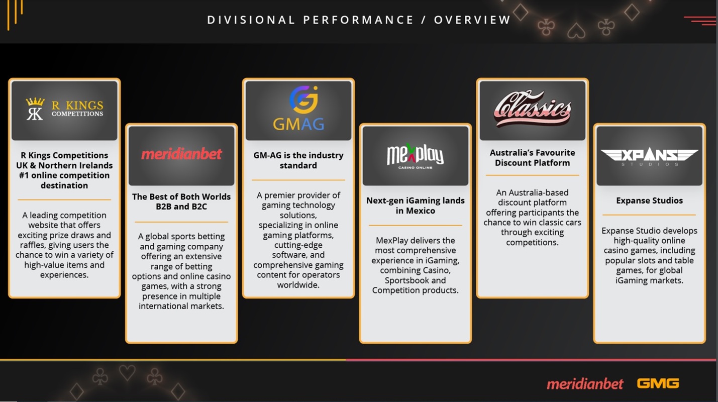 Kompanija je nastavila da širi svoje prisustvo u ključnim tržištima, uključujući SAD, Brazil, Južnu Afriku, Australiju i Keniju, dok ukupno posluje u 25 zemalja sa više od 1200 zaposlenih. Osim toga, Meridianbet je ostvario značajne rezultate kroz svoj razvojni studio za proizvodnju igara – Expanse Studios, koji je lansirao više od 50 naslova.