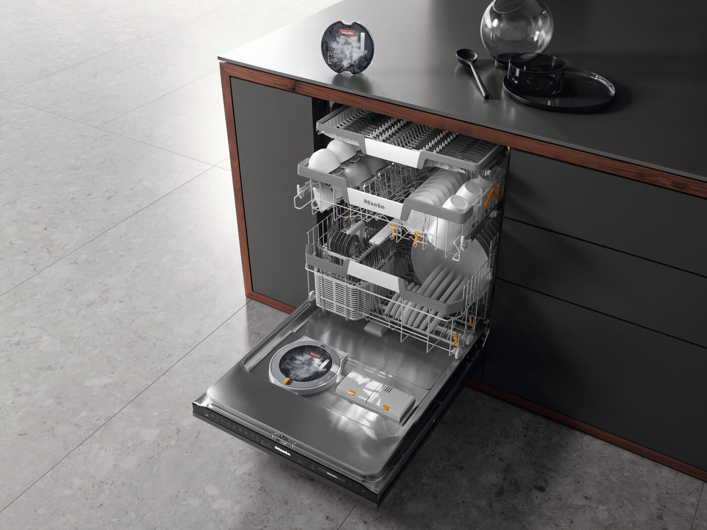 Još jedan uspostavljen standard za održivost jeste serija mašina za pranje sudova G7000, koja je istovremeno postigla vrhunac dizajna i inženjeringa. Inovativni, prvi na svetu, AutoDos sistem u kombinaciji sa praškastim deterdžentom za automatsko doziranje Miele PowerDisk poboljšava performanse mašine za pranje sudova, racionalno i precizno odmerava idealnu količinu deterdženta na osnovu izabranog programa i temperature, obezbeđujući efikasnije rezultate i blistavo čiste sudove.