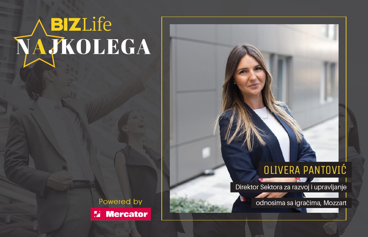 Za Mozzart je karakteristična timska atmosfera, a jedna od onih koja nam je prva asocijacija na predusretljivost i ljubaznost je Olivera Pantović. Olja je uvek dobro raspoložena, spremna da svakog sasluša i izađe mu u susret. Iako je imala i svojih privatnih problema tokom epidemije, drugima je pružala podršku. Svaki put kada smo u nedoumici, njen osmeh nam ukazuje da smo na pravom putu, a sve kolege bi mogle da posvedoče da nije bilo prilike da se Olivera nije javila na telefon kada je nekome od nas bila potrebna. To su samo neki od razloga zbog kojih smo ponosni što radimo sa onima koji daju sve od sebe da nas obodre, pomognu nam i nasmeju nas, uvek spremni da zajedničkim snagama obavimo posao. U prethodnom periodu svi smo imali priliku da uvidimo koliko svakodnevica može biti neizvesna, ali ono što zasigurno znamo jeste da Oliveru mnogi od nas smatraju najboljim kolegom. Imati nju za koleginicu je privilegija i čast.