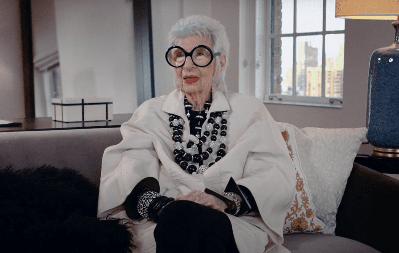 Iris Apfel jedinstveno je ime u svetu mode i dizajna enterijera. Na prvu privlači svojim ekscentričnim i maštovitim stilom odevanja vođenim idejom da je svet dovoljno siv, te da ga odećom, obućom i nakitom možemo učiniti veselijim i lepšim mestom.