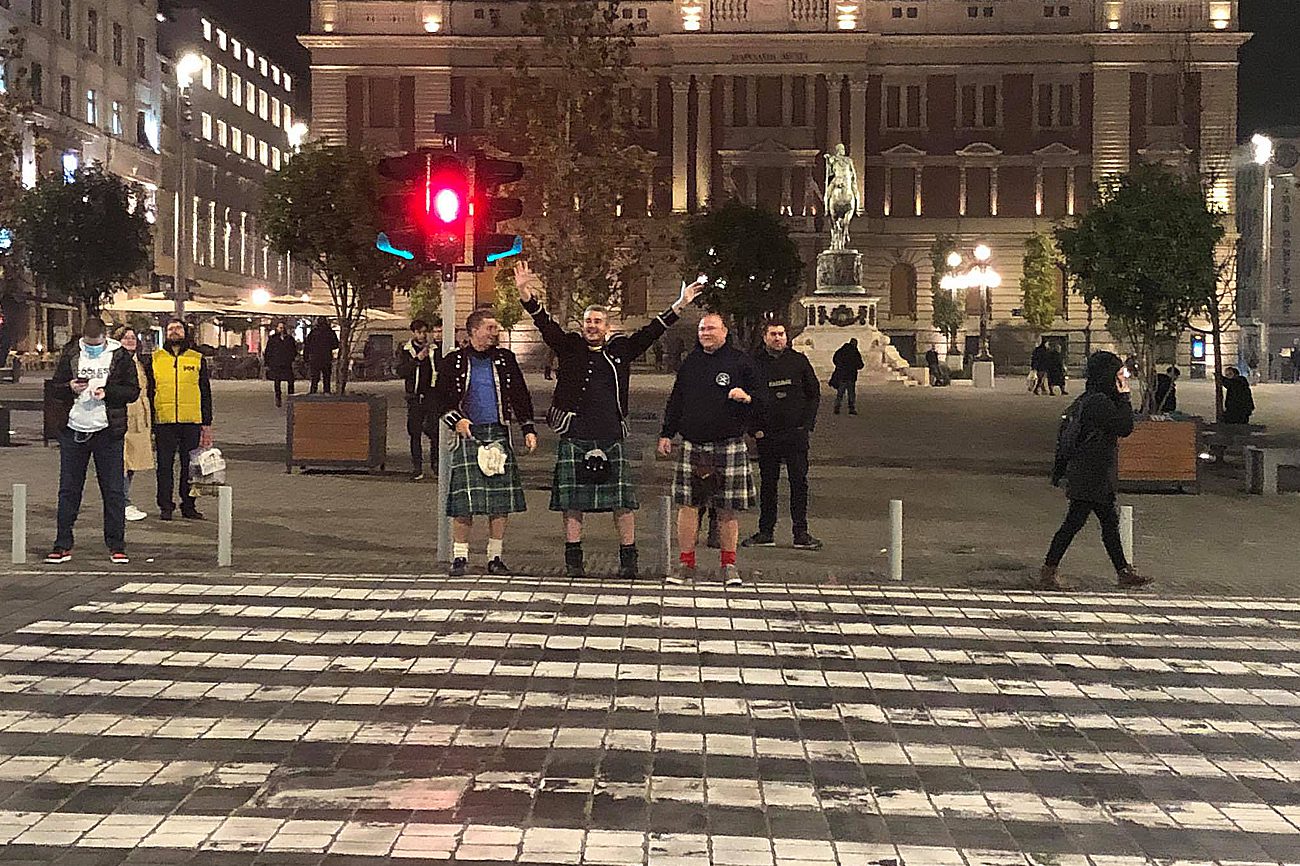 Navijači Glazgov Rendžersa u pratnji policije blokirali centar Beograda (VIDEO)