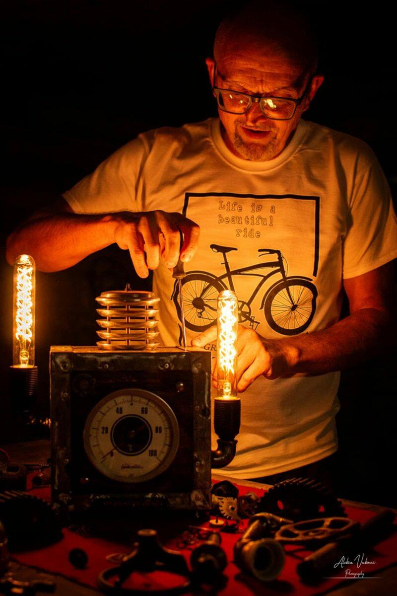 Nebojša, zaljubljenik u metal, drvo i sve što nosi specifičnu industrijsku estetiku, stvorio je autentični svet lampi koje donose dašak viktorijanske fantastike u svakodnevni život.