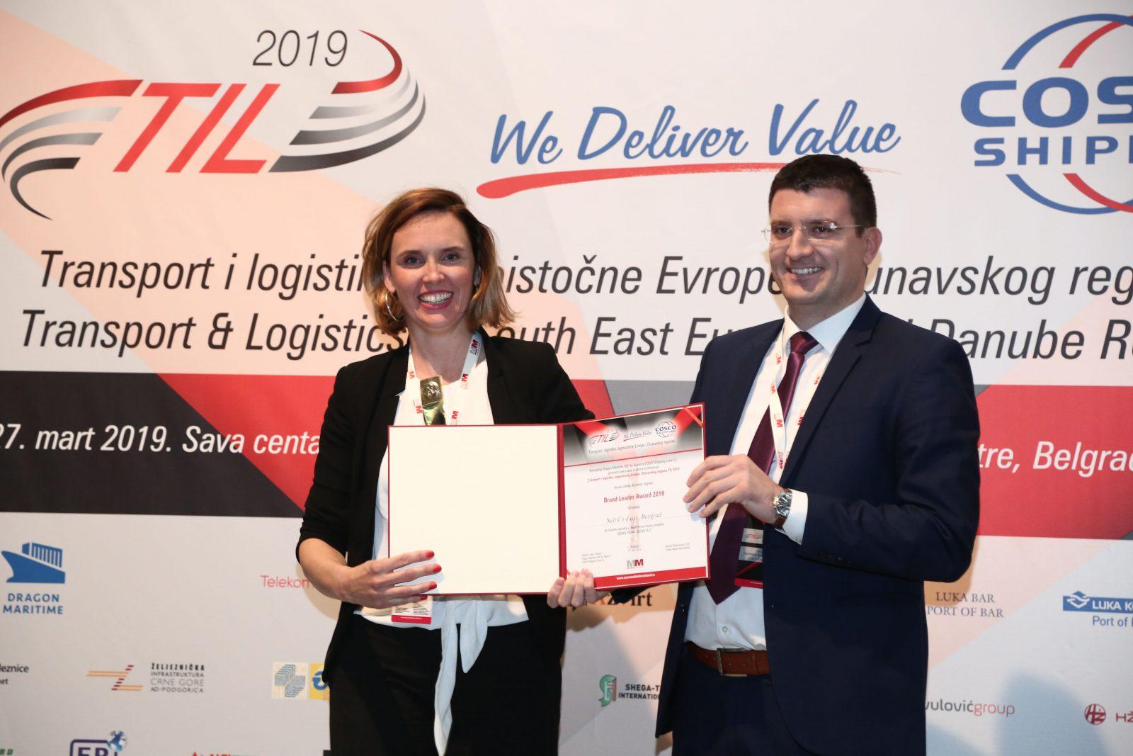 Nagrada je dodeeljena na ovogodišnjoj biznis konferenciji „Transport i logistika 2019“ a dodeljuje je Dragon Maritime Group, zastupnik logističkog giganta kineske kompanije COSCO, na osnovu niza standardizovanih kriterijuma koji podrazumevaju profesionalnost, inovativnost i visok stepen tržišne prepoznatljivosti.