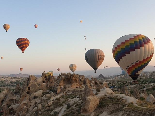 Najjači utisak mi je ostavio let balonom iznad Kapadokije. Ujutru oko 5h se kreće na lokaciju odakle poleću desetine ogromnih šarenih balona sa velikim korpama u koje staje od 20 do 26 ljudi. Kreće se jako rano da bi se uhvatio prvi izlazak sunca. Let traje oko sat i po i imali smo još jednu priliku da uživamo u živopisnim, bajkovitim predelima Kapadokije okupani prvim zracima sunca, ali ovaj put iz vazduha. Prizor je neverovatan i još kad pogledate oko sebe i vidite desetine šarenih balona sve deluje nestvarno.