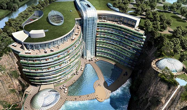 Podnožje planine Tjanmen koje je nekada bilo kamenolom sada krasi čudesno zdanje hotela „InterContinental Shanghai Wonderland“, prenosi Biznis insajder.