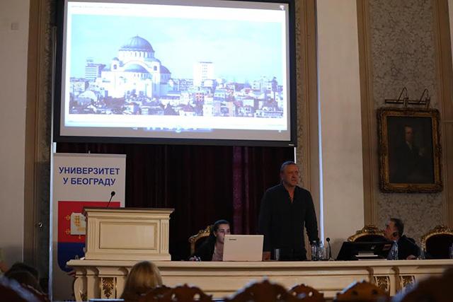 Predavanje, koje je održano u Svečanoj sali Beogradskog univerziteta, okupilo je studente sa Fakulteta primenjene i likovne umetnosti, ali i Filozofskog, Filološkog i Bogoslovskog fakulteta, ali i brojne zainteresovane građane.