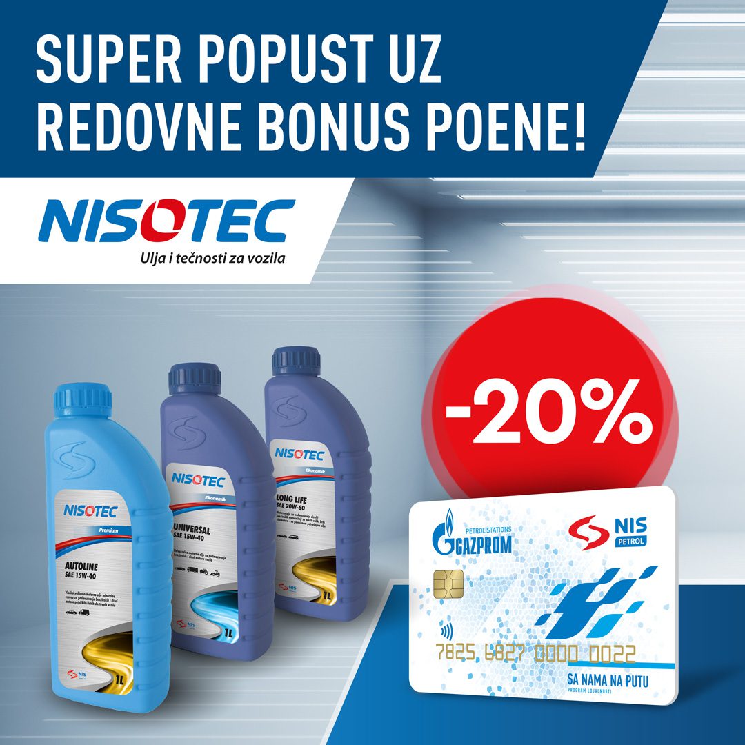 Кompanija NIS je za svoje verne potrošače, tokom meseca oktobra, obezbedila posebne popuste na određene proizvode iz NISOTEC asortimana, dostupne na svim NIS Petrol i GAZPROM benzinskim stanicama.