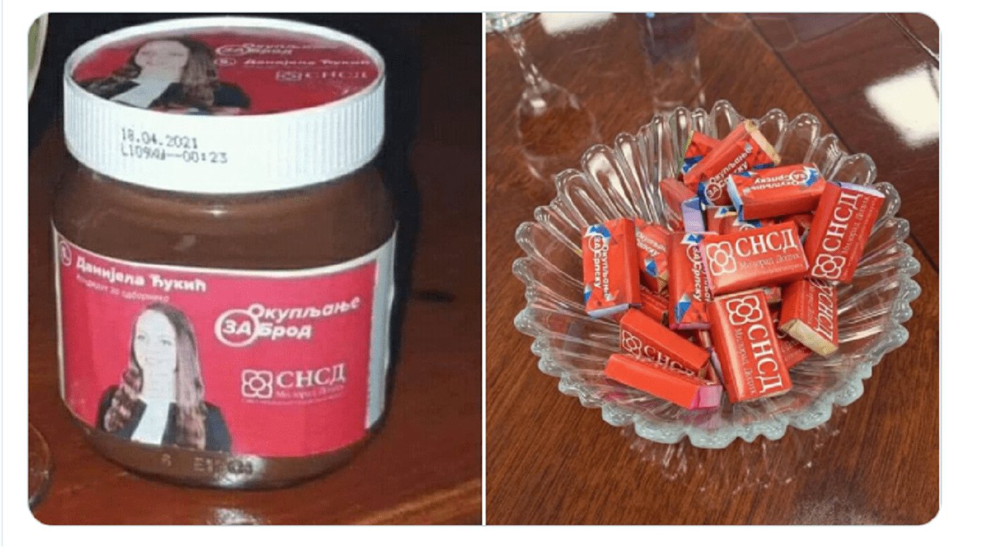 Tako je kandidatkinja SNSD za odbornika u Brodu Danijela Đukić brendirala novu vrstu eurokrema upakovanu u njen promotivni materijal sa kojim je krenula u osvajanje gasova.