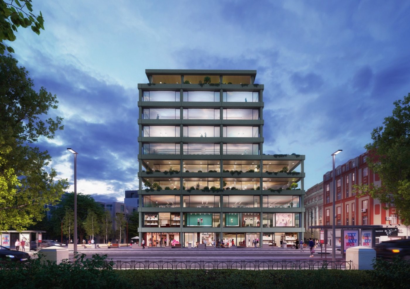 Za prizemlje je rezervisan maloprodajni i restoranski prostor, dok spratove zauzima kancelarijski prostor klase A. Peti sprat, kao i poslednji, namenjeni su za raznovrsne događaje i konferencije, kao svojevrsni kongresni centri. Imajući u vidu Plan generalne regulacije kojim je predviđeno širenje Trnske ulice, u sklopu budućeg gradskog projekta poslovni objekat će imati poluzatvoreni atrijum u unutrašnjosti i time uticati na formiranje modernog ambijenta u srcu grada . Takođe, s obzirom na to da se nalazi na veoma traženoj centralnogradskoj lokaciji, zgrada ima garažu kapaciteta 88 parking mesta.