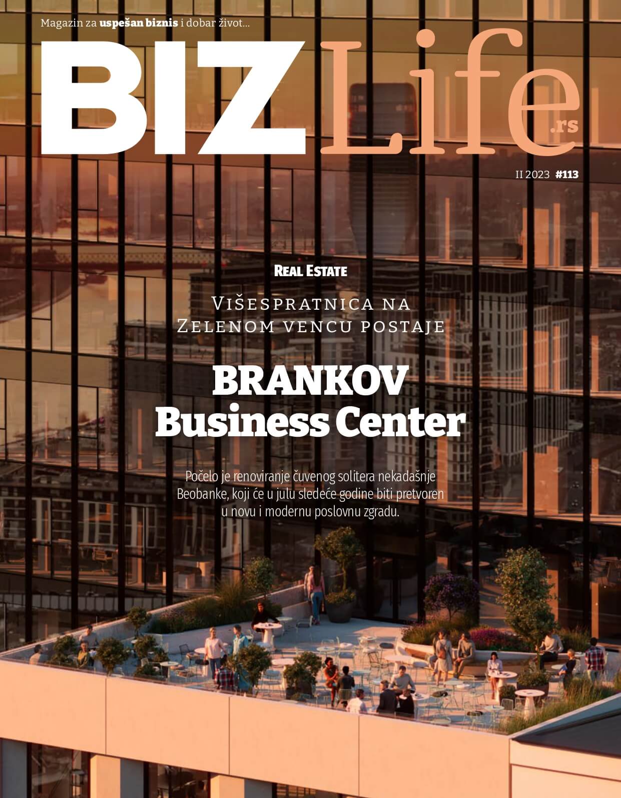 Na naslovnoj strani prvog od 10 izdanja našeg magazina u ovoj godini nalazi se ekskluzivna fotografija višespratnice na Zelenom vencu koja postaje BRANKOV Business Center. Zgrada nekadašnje Beobanke će u julu iduće godine biti pretvorena u novu i modernu poslovnu zgradu.