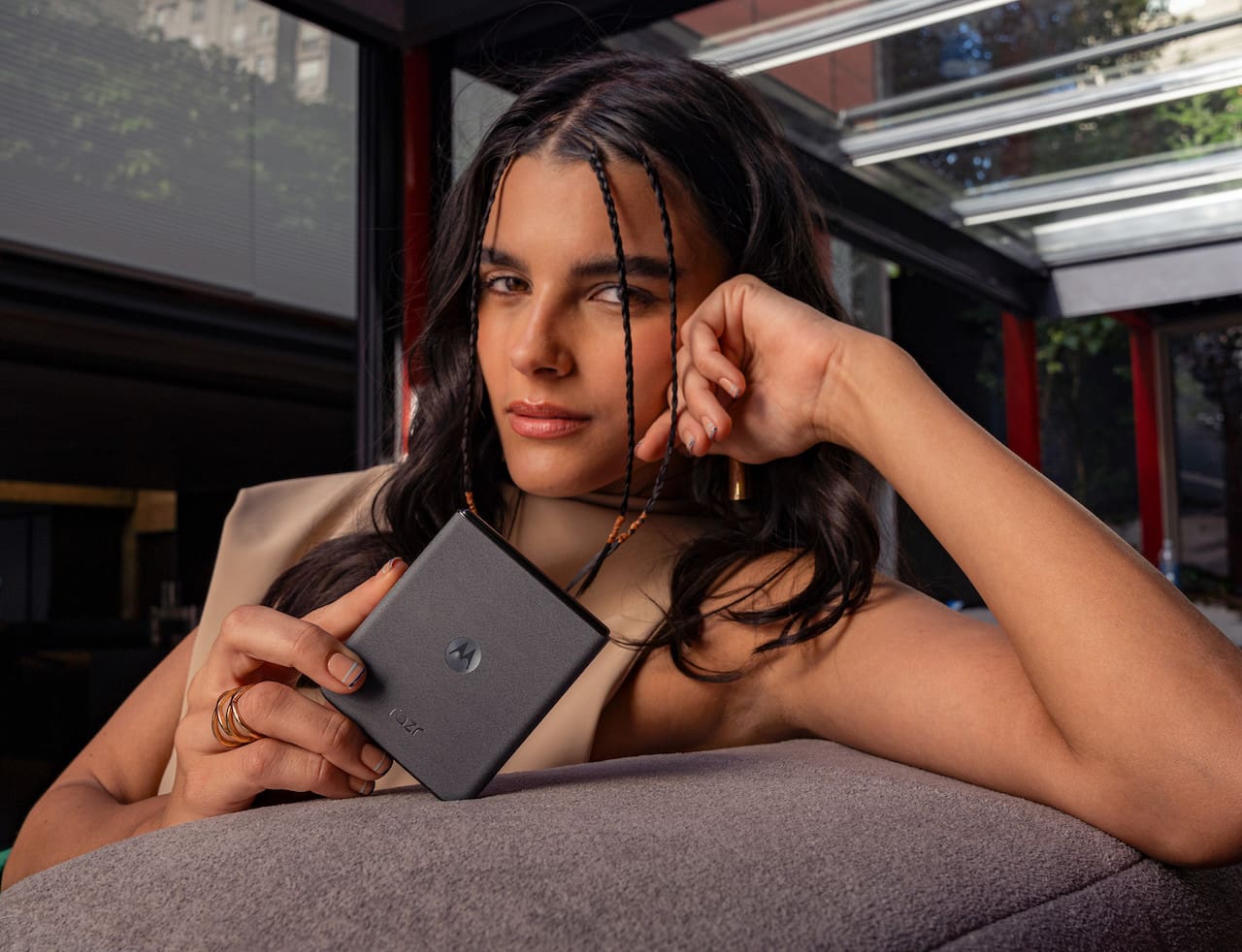 Novi razr telefoni dolaze u smelim bojama, završnici od mekane veganske kože i konturisanim ivicama koje izgledaju podjednako dobro kada ih gledate kao i kada se telefon nalazi u ruci.