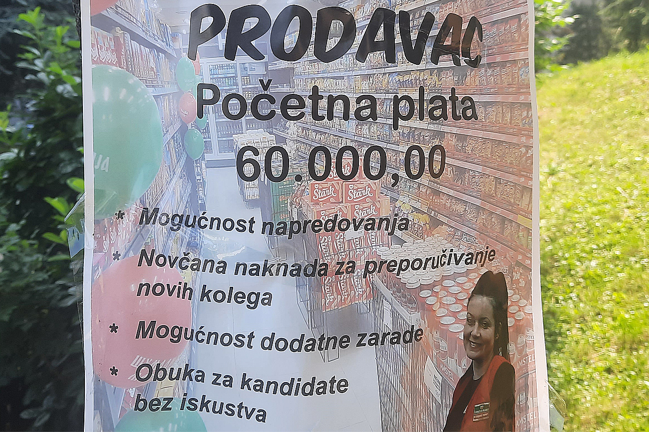 Sve je više radnji, naročito u Beogradu, na čijim izlozima se uz reklamne plakate nalaze i oni sa porukom: „Potrebni radnici/ce“.