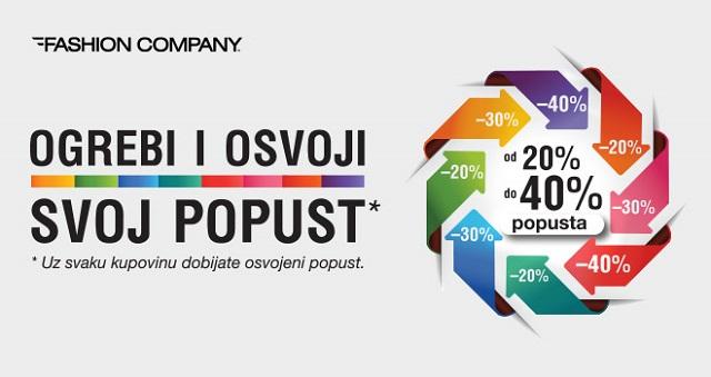 U prodavnicama Fashion company od 17.05.2019. startovala je akcija OGREBI & OSVOJI POPUST od 20 do 40% koji se obračunava na aktuelne cene proizvoda iz kolekcije proleće/leto 2019, uključujući i artikle koji su deo MID SEASON SALE ponude.