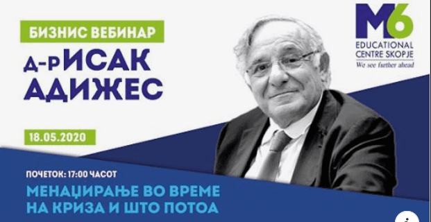 U vreme kada se suočavamo sa jednom od najvećih kriza moderne istorije, dr Adizes predstaviće svoje gledište i savete o upravljanju kompanijama i organizacijama tokom kriznog perioda, a osvnuće se i na temu – Manadžment u vreme krize i šta posle?