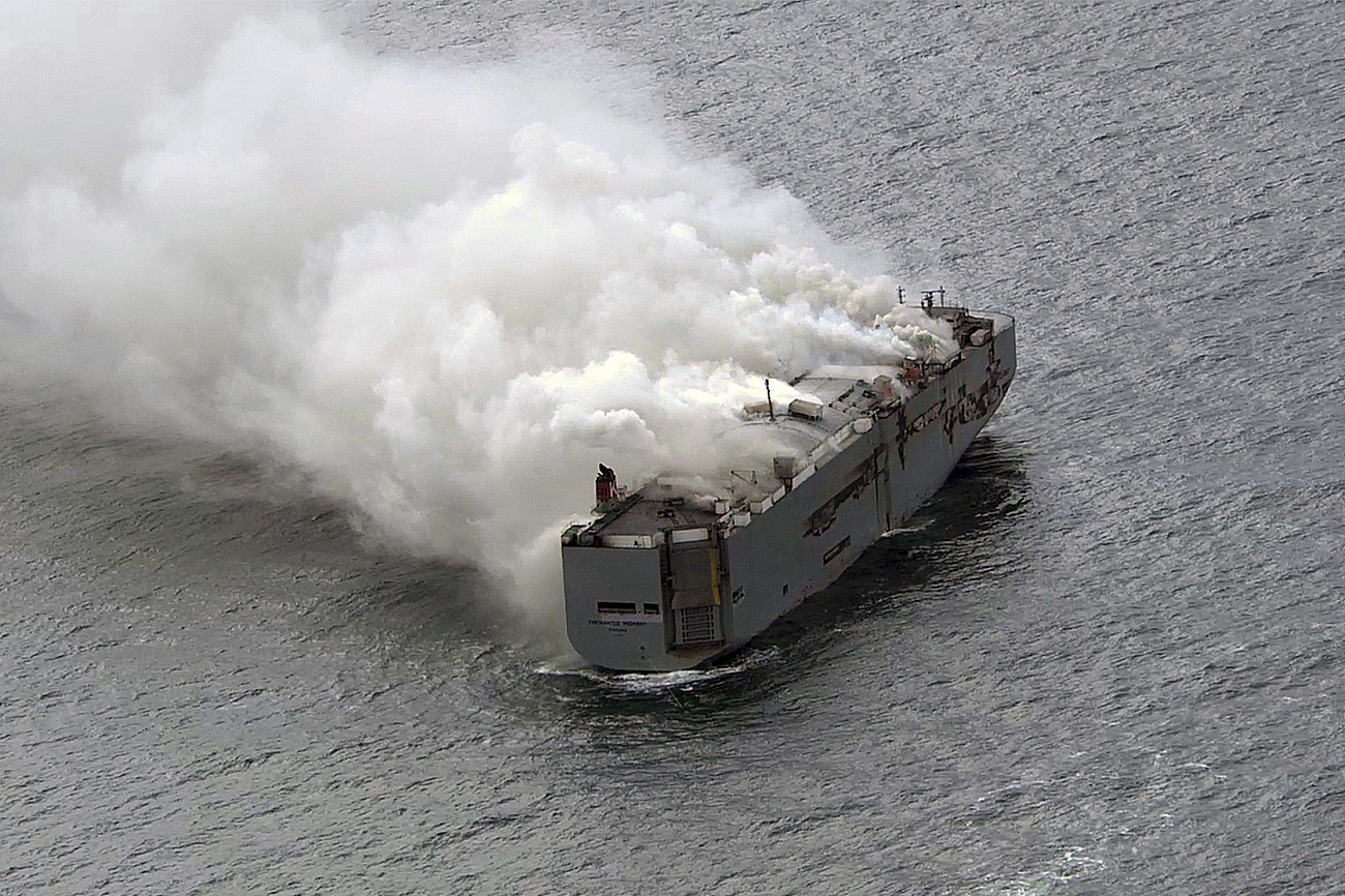 Opasnost od katastrofe: Brod koji gori prevozi 500 e-automobila (VIDEO)