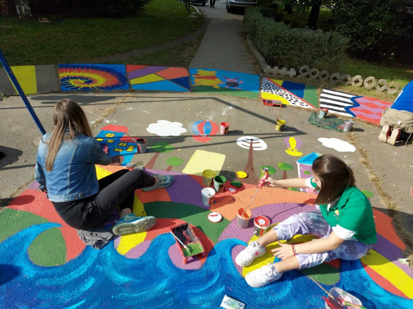 „Ideja nam je bila da se unutar parkića na betonu naslikaju školica, brojalica, koraci da zaigramo tvist, ogledalice, kao i druge dečije igrice. Površine su parcelisane, a u svakom polju se nalazi neka slika koja nas uči nečemu novom, kako bi učili kroz igru uz ornamente i dizajn“, izjavila je Maja Živković, profesor likovne kulture u Savremenoj gimnaziji.