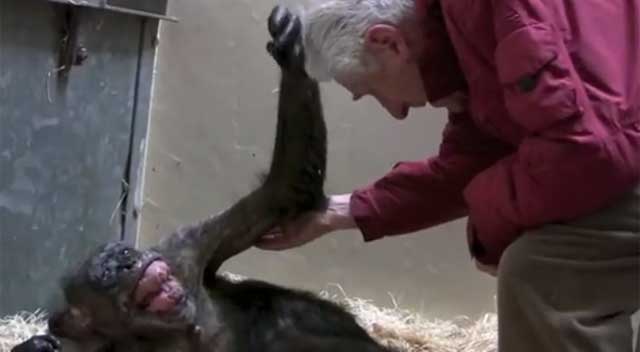 Mama, bivša predvodnica kolonije šimpanzi u zoološkom vrtu u Arnemu u Holandiji, odbijala je da uzima hranu i prestala da komunicira, sve dok je profesor i njen stari prijatelj Jan van Huf, kog je poznavala od 1972. godine, nije posetio.