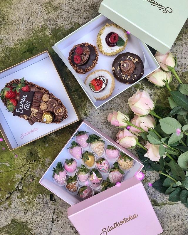 Ukoliko uz znak pažnje želite da pružite i neku toplu emociju damama iz vašeg privatnog ili poslovnog okruženja, priuštite im slatki spektakl u obliku čoko jajeta i palete sočnih jagoda u čokoladi ili “uberite” za njih ukusne Slatkotekine krofne.
