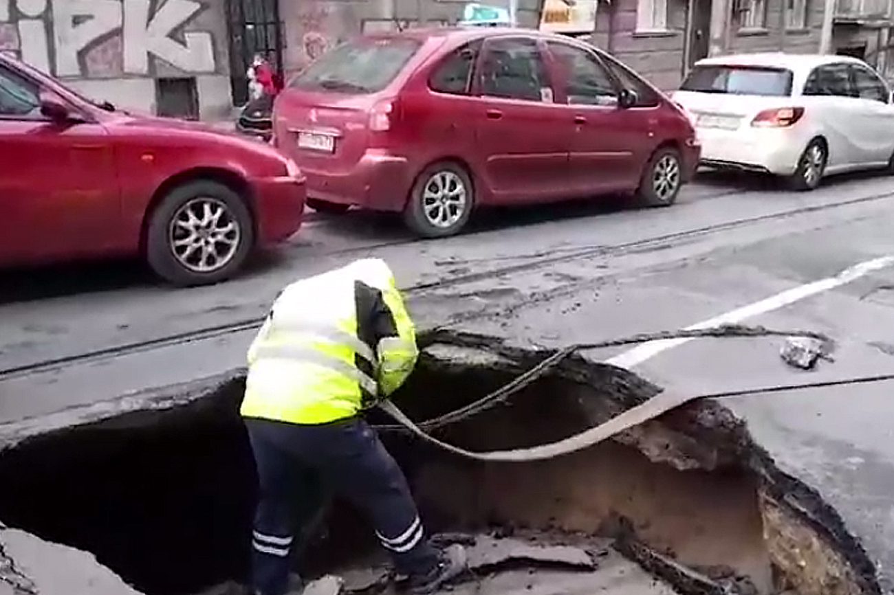 Nakon uklanjanja vozila, i „drenaže“, jasno se videlo koliki krater je nastao na kolovozu, koji se „otvorio“ iz za sada nepoznatih razloga.
