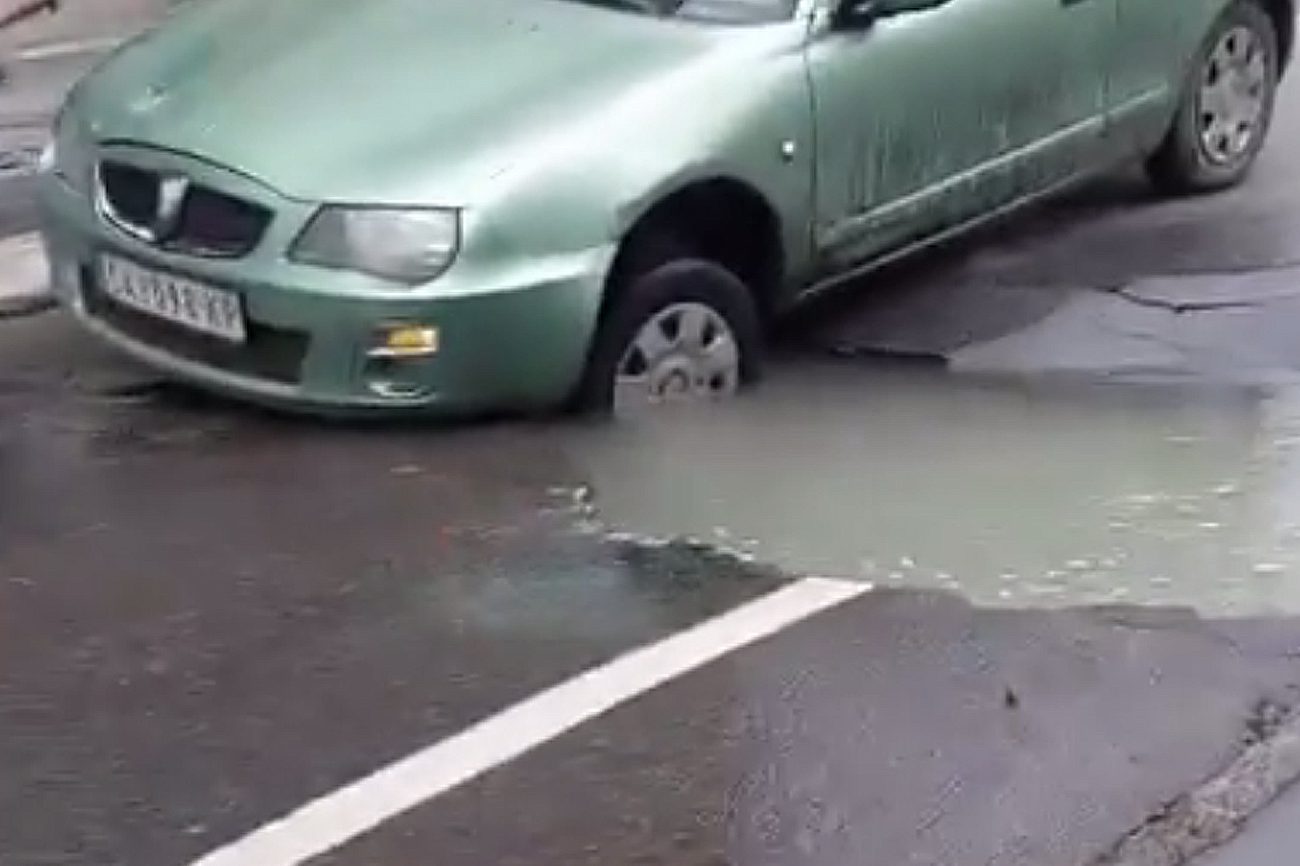 Otvorio se asfalt u centru Beograda, propala dva automobila (FOTO)