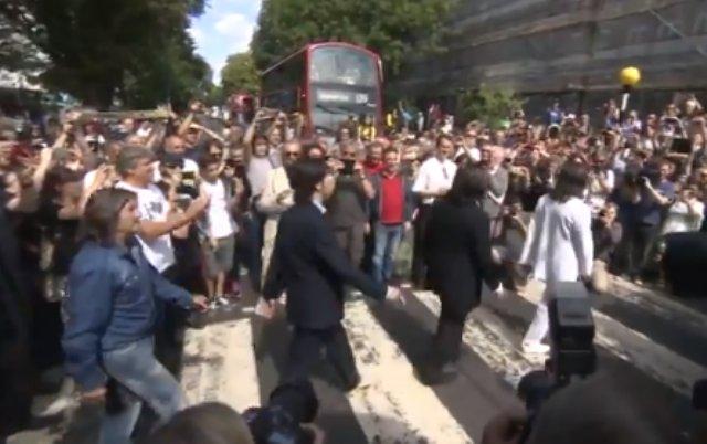 Obožavaoci su mobilnim telefonima, na pešačkom prelazu koji je postao mesto hodočašća obožavalaca Bitlsa iz celog sveta, pravili fotografije u znak sećanja na naslovnicu albuma Bitlsa.