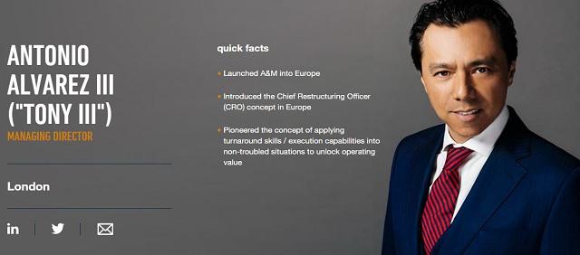 Kako se navodi na službenim stranicama kuće Alvarez & Marsal, Antonio Alvarez III sin je osnivača firme Alvarez & Marsal, ujedno i zaslužan za širenje te firme na Evropu.