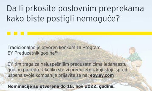 Preduzetništvo EY tim traga za najuspešnijim preduzetnicima u Srbiji – konkurs za pro... 27/10/2022 | 09:40