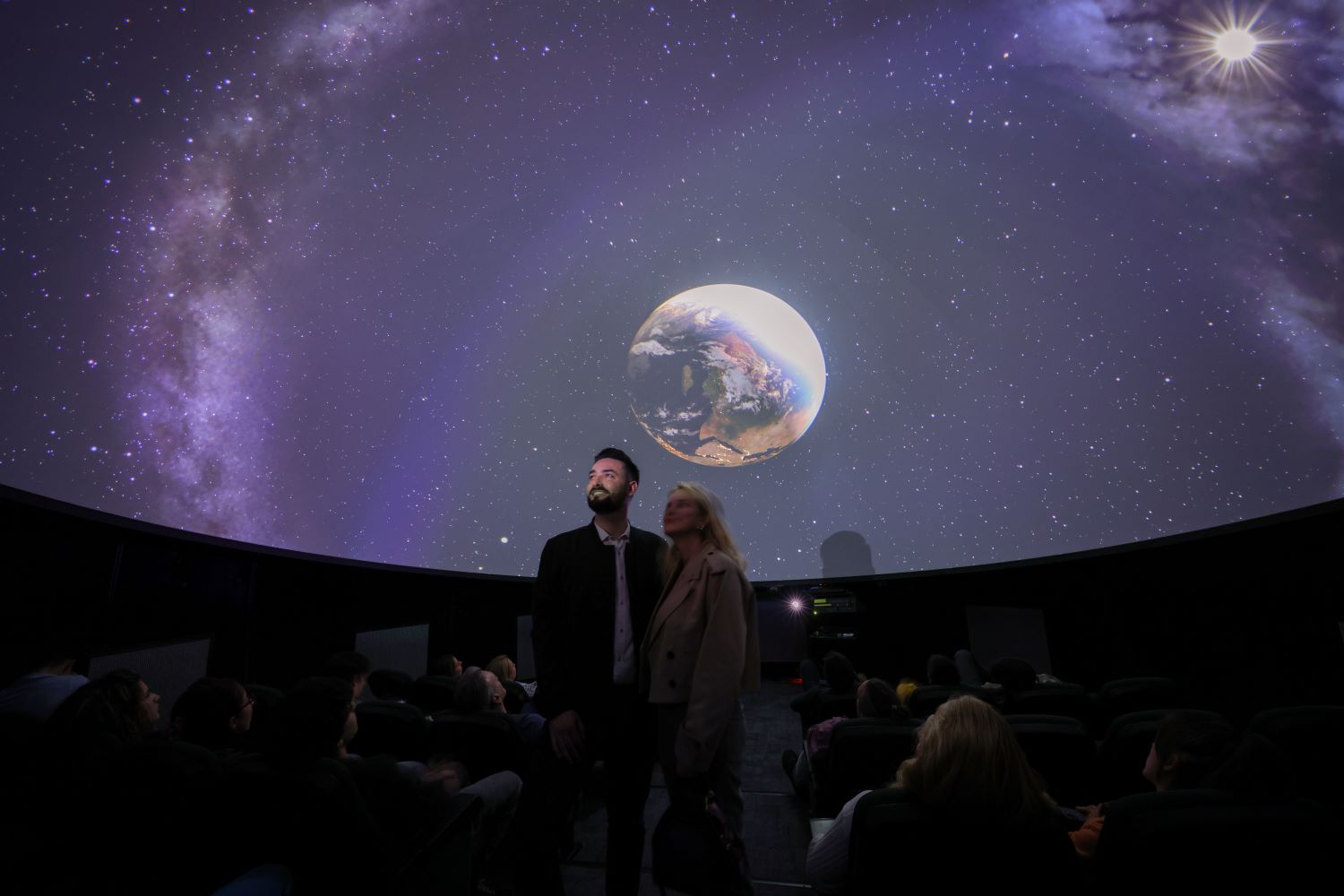 U Palati nauke nalazi se i planetarijum sa 36 sedećih mesta, najsavremenijeg audio-video sistema, koji posetiocima pruža vizuelni spektakl od 360 stepeni, uz projekcije o tajnama svemira koje se smenjuju na svakih sat vremena. U prostoru Show Laba predstavljaju se projekti institucija sa kojima sarađuje Zadužbina Miodraga Kostića, a poseban doživljaj pružaju VR kapsule koje omogućavaju virtuelni obilazak drugih lokacija kroz interaktivne 3D 360 video ture.