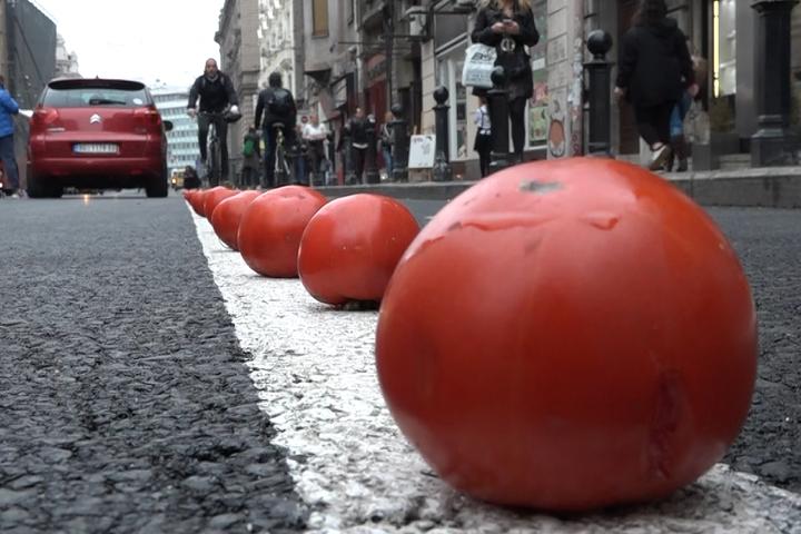 Udruženje građana „Ulice za bicikliste“ organizovalo je protest u Vasinoj ulici u Beogradu, nezadovoljni parkiranjem automobila na nedavno iscrtanoj biciklističkoj stazi, a za poseban performans koristili su – paradajz.