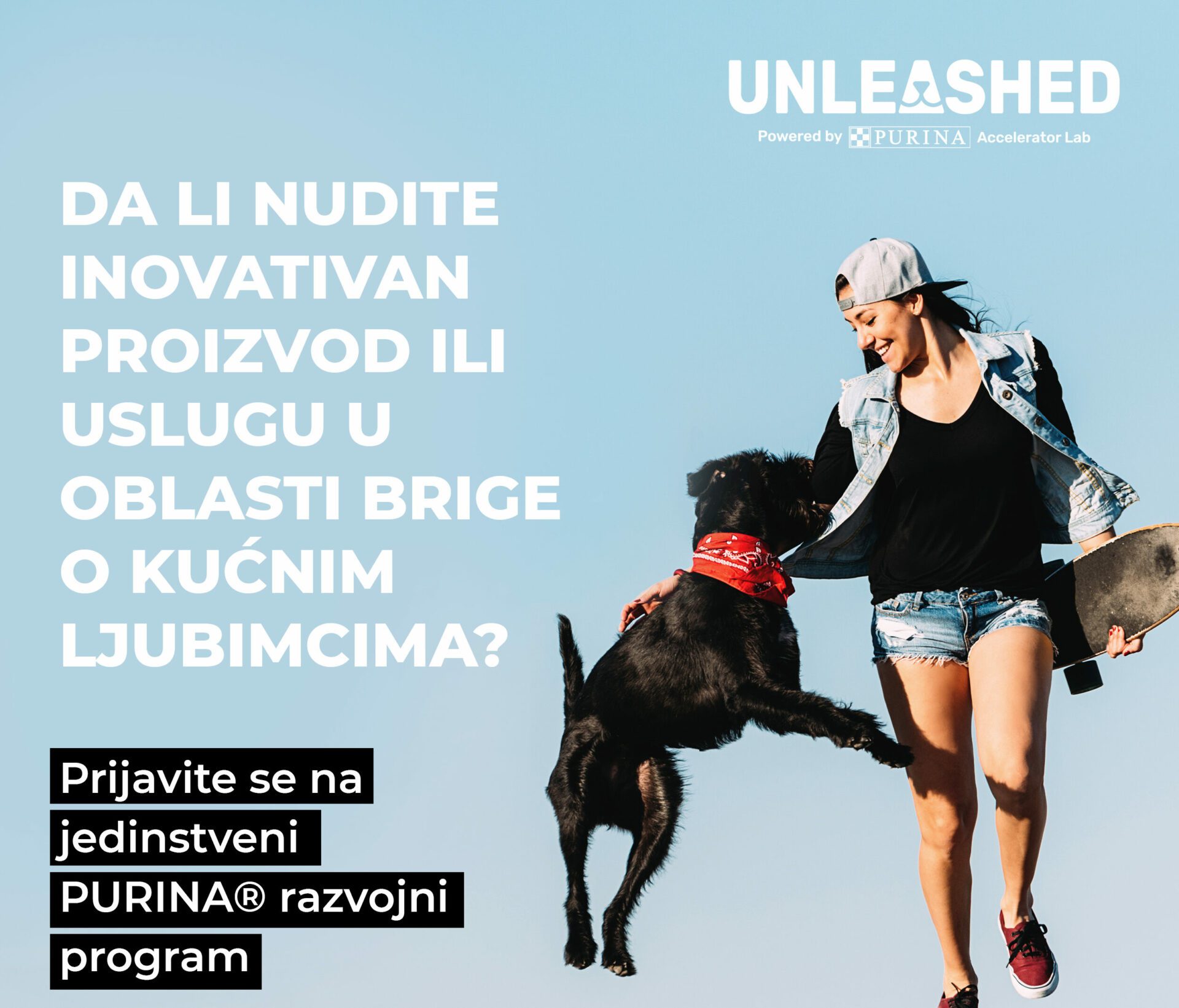 Jedinstveni razvojni program Unleashed brenda Purina, treću godinu zaredom objavljuje poziv za prijavljivanje startap preduzetnika u oblasti brige o kućnim ljubimcima u Evropi koji pored novčane pomoći od 50.000 švajcarskih franaka, dobijaju i svu neophodnu podršku Purina stručnjaka.