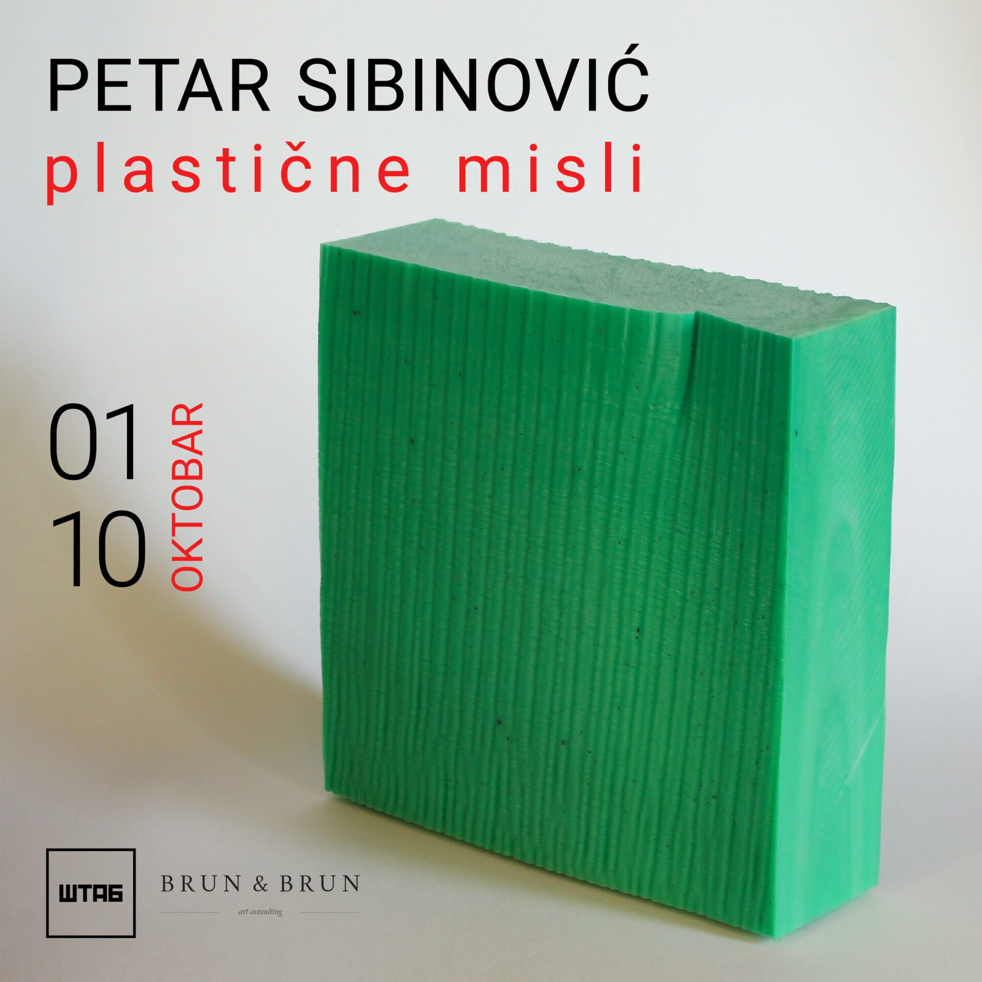 Izložba Petra Sibinovića „Plastične misli“ u galeriji Štab u Beogradu, obuhvata dinamičnu seriju skulptura nastalih u prethodne dve godine kao produkt analize i istraživanjaraznih, skulptorski neuobičajenih materijala, reciklažnih procesa i novih tehnologija izrade. Ovi radovi upravo istražuju simbiotske odnose pretnodno navedenih fenomena, preispitujući dobijene likovne vrednosti kroz jedan savremen, tehnološki postupak, stvarajući specifičan likovni izraz.