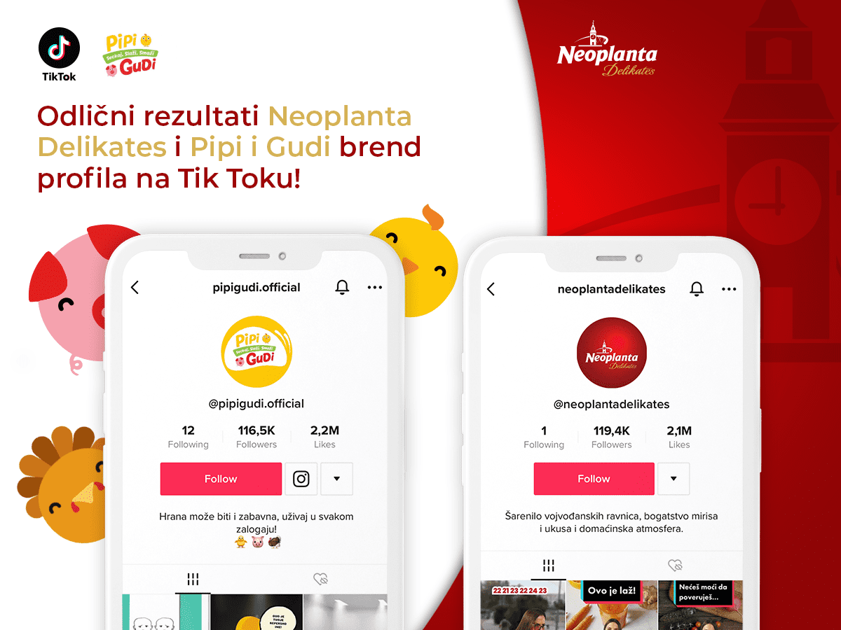 Brendovi Neoplanta delikates i Pipi i Gudi su na vreme prepoznali potencijal Tik Toka i počeli da daju svom sadržaju veću vrednost, kako bi ih algoritam i publika prepoznali kao vredne njihovog vremena i pažnje. Ono što znamo da će da se desi, jeste da će biti sve teže i teže probiti se na tzv. #ForYou page, nevezano za to da li je u pitanju Tik Tok, Reels, Shorts ili bilo koji drugi short video format – jer će influenseri, brendovi, ljudi itd. praviti sve više contenta.