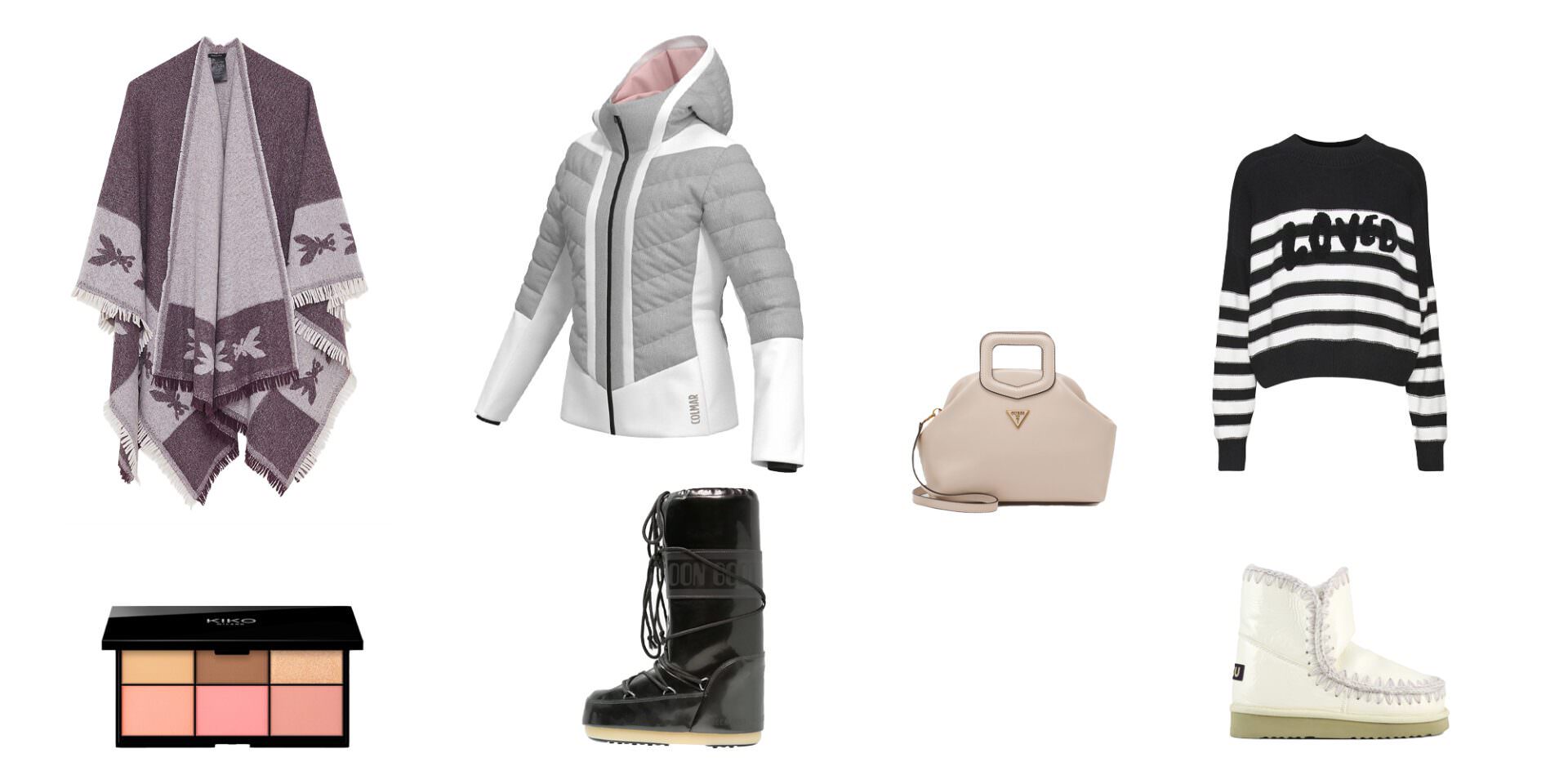 Colmar jakna, Desigual džemper, Mou čizme, Patrizia Pepe pončo, Moon Boot čizme za sneg, KIKO Milano paleta, Guess torba