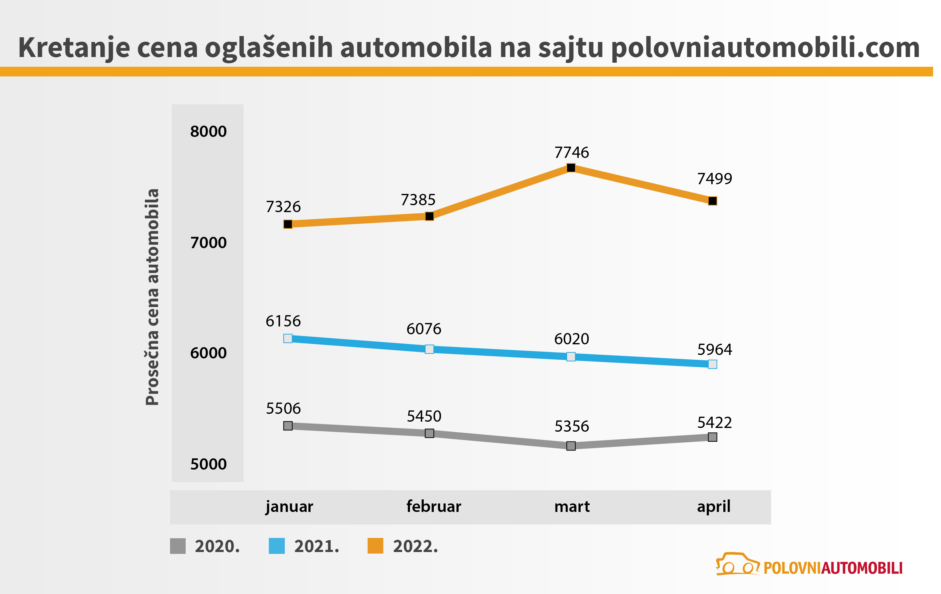 Prema analizi sajta Polovni automobili, u prva četiri meseca tekuće godine cene polovnjaka veće su za 23% u odnosu na isti period prethodne godine. S obzirom na aktuelna dešavanja u svetu prodavci i kupci automobila očekuju i dalji rast.