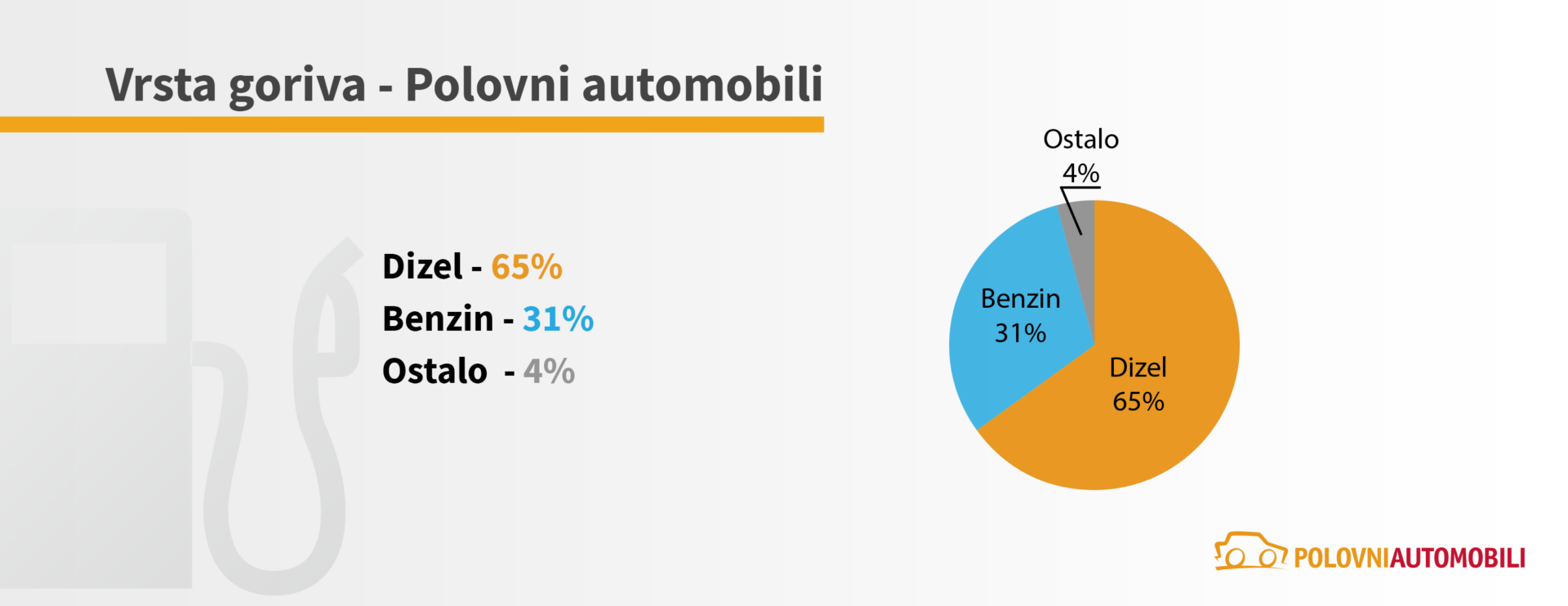 I u prva četiri meseca tekuće godine najveći broj kupaca polovnih automobila odlučio se za kupovinu onih sa dizel motorom, čak 65%, dok je 31% njih izabralo benzin. Prvi na listi najprodavanijih polovnjaka je Volkswagen, dok ga redom slede: Opel, Peugeot, Audi i Renault