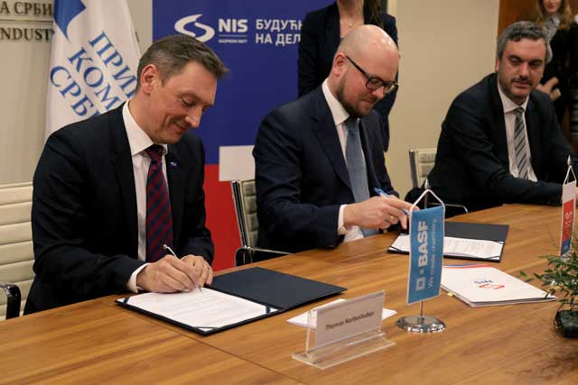 Sporazum o poslovno-tehničkoj saradnji potpisali su Kiril Tjurdenjev, prvi zamenik generalnog direktora NIS-a za preradu i promet, i dr Tomas Narbeshuber, potpredsednik kompanije BASF za Jugoistočnu Evropu.