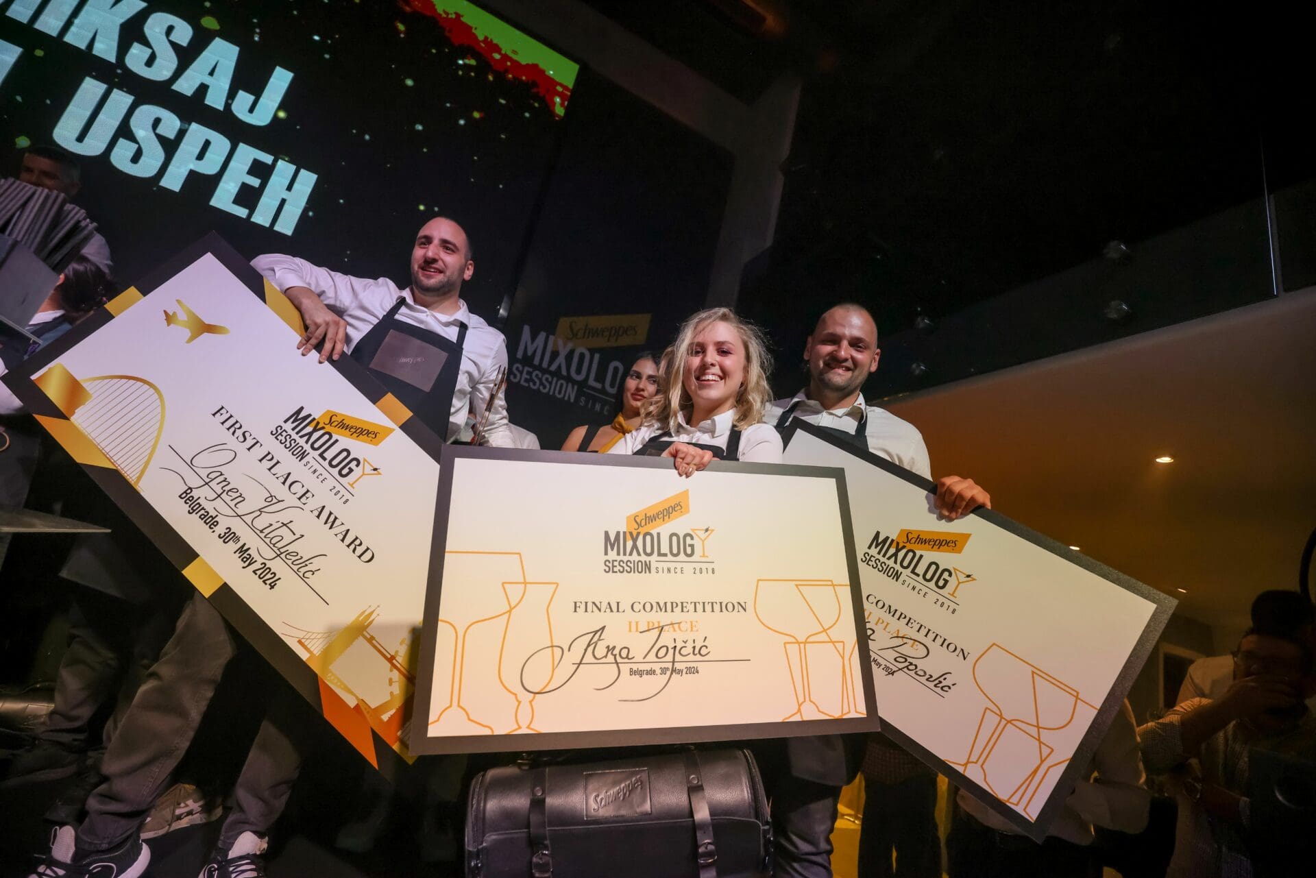 Reč je o Ognjenu Kitaljeviću iz Beograda koji je nastupio sa koktelom „Papa’s Golden Tribute“. Ognjena kao pobednika čeka vredna nagrada – sedmodnevno putovanje u London i prilika da unapredi svoje veštine uz edukacije sa evropskim Schweppes ambasadorima, kao i da stekne iskustvo rada u najpopularnijim londonskim koktel-barovima. Drugo mesto pripalo je Anji Tojčić, dok je treće mesto zauzeo Luka Popović. Uz luksuzni set barmenske opreme, troje najboljih dobijaju i putovanje u Atinu na čuveni Athens bar show.
