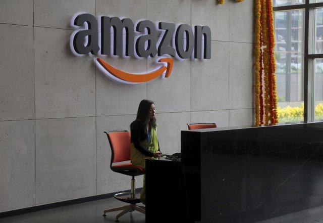 An Indian employee works at the reception desk of Amazon’s newly inaugurated campus building in Hyderabad, India, Wednesday, Aug. 21, 2019. Built to support more than 15,000 employees, the new campus is Amazon’s first owned office building outside the US and the single largest building globally, according to an Amazon press release. (AP Photo/Mahesh Kumar A.)