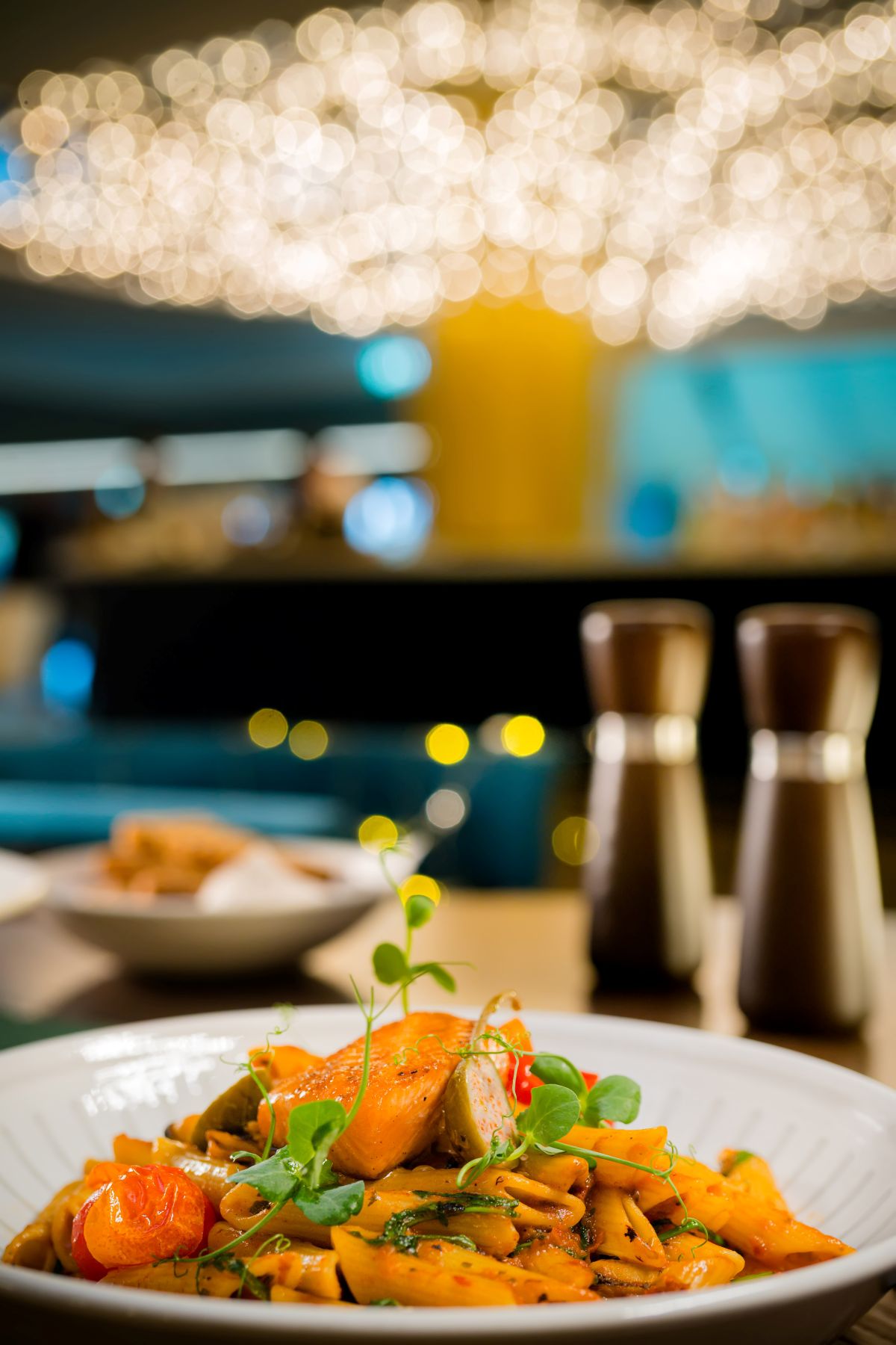 - Pasta sa mariniranim dagnjama i lososom, u sosu od paradajza i rukole, namenjena gostima koji preferiraju savremene mediteranske profile.