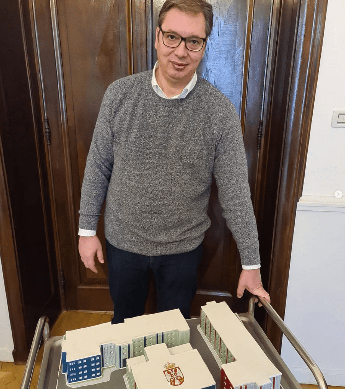 Predsednik Srbije Aleksandar Vučić pohvalio se na svom Instagram profilu slatkim poklonom koji je dobio – tortom u obliku KOVID BOLNICE.
