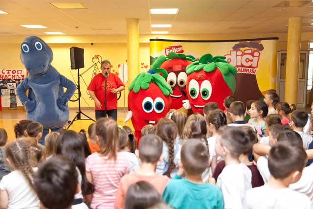 Predstava ,,Jagodići i dinosaurusi’’ u ustanovama socijalne zaštite deo je društveno odgovornog pristupa kompanije Frikom da ovoj deci ulepša trenutke provedene u ustanovama, i pruži priliku da uz omiljenu poslasticu nauče i nešto novo.