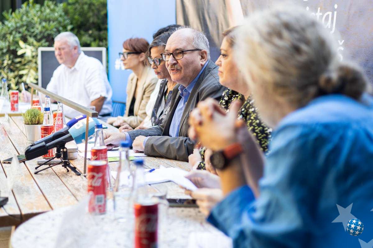 Na konferenciji za medije prisutnima su se obratili zamenica šefa Delegacije EU u Srbiji Plamena Halačeva, direktor Gete Instituta Kristof Feldhues i ambasadorka Grčke Marija Levanti.
